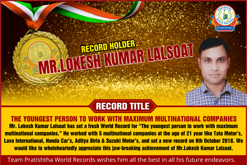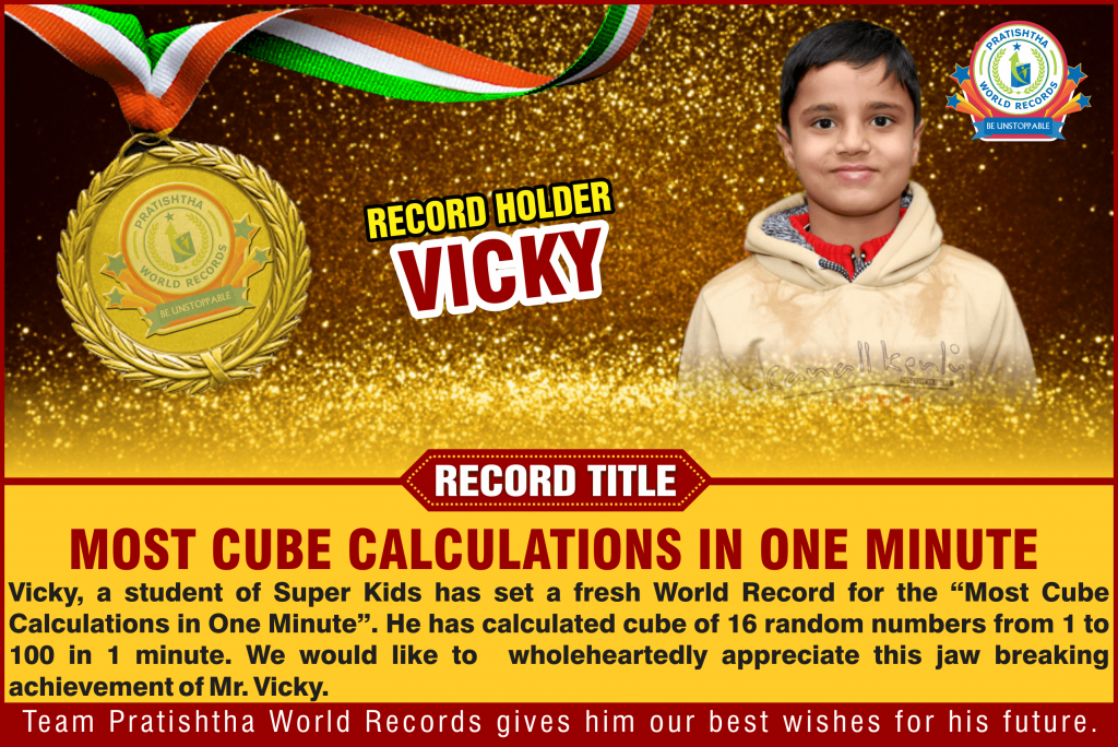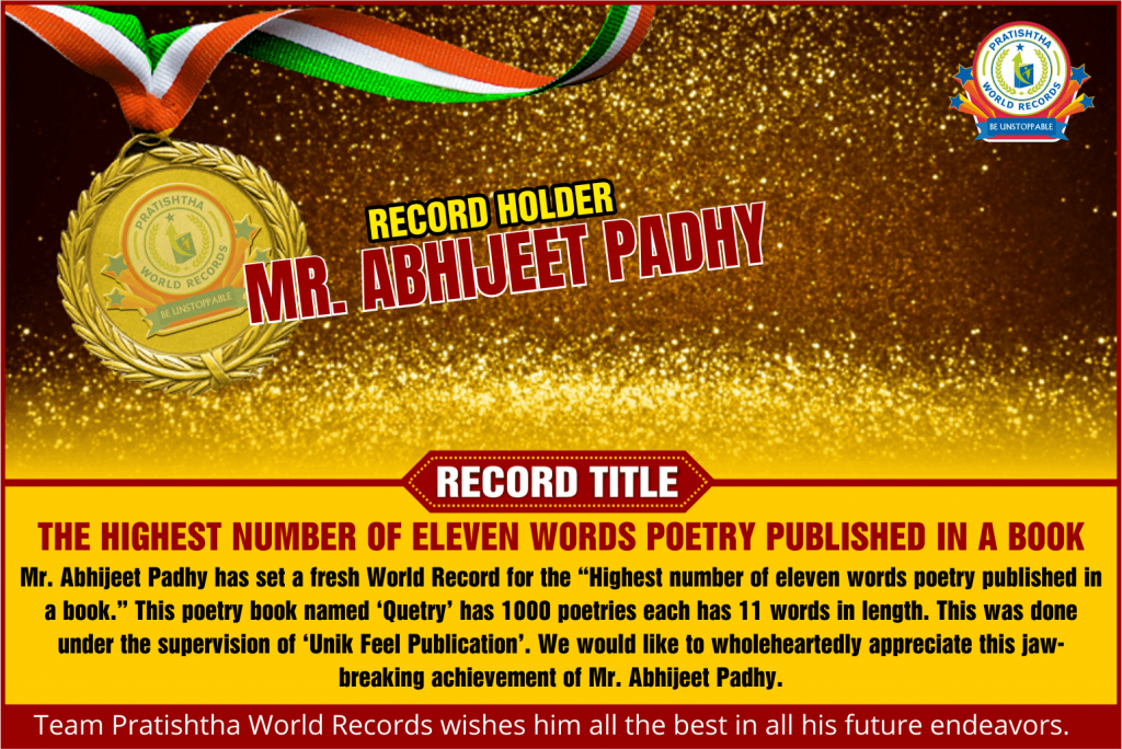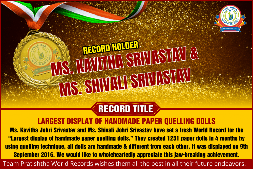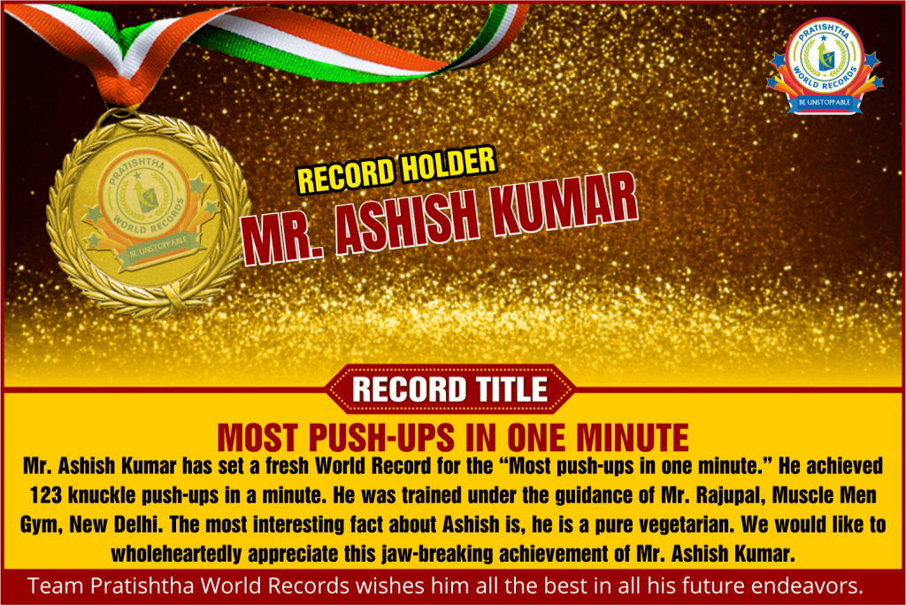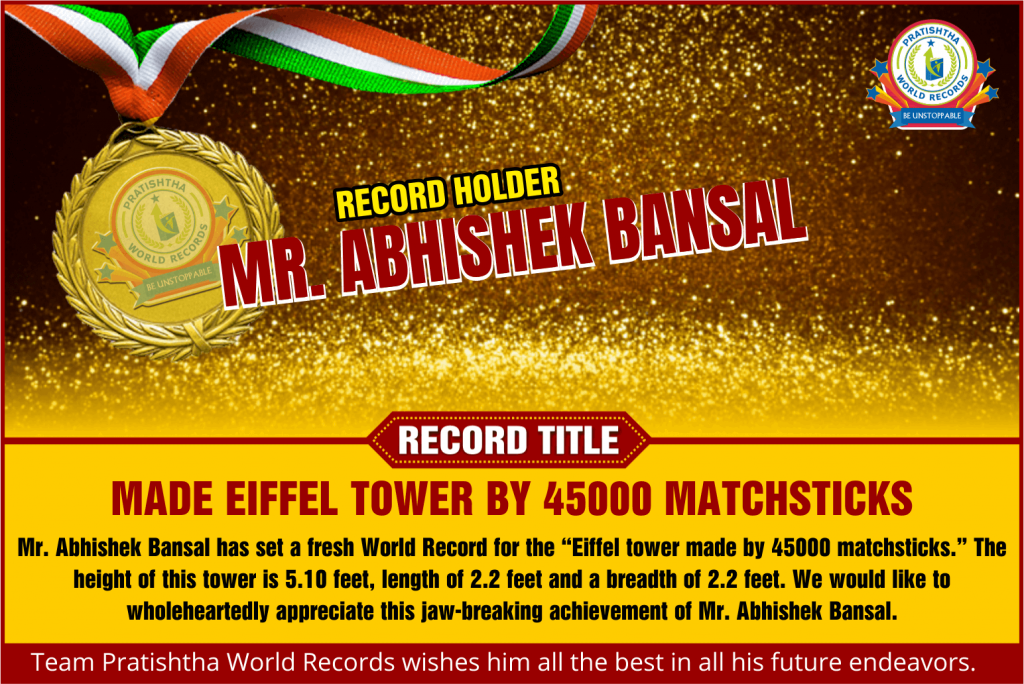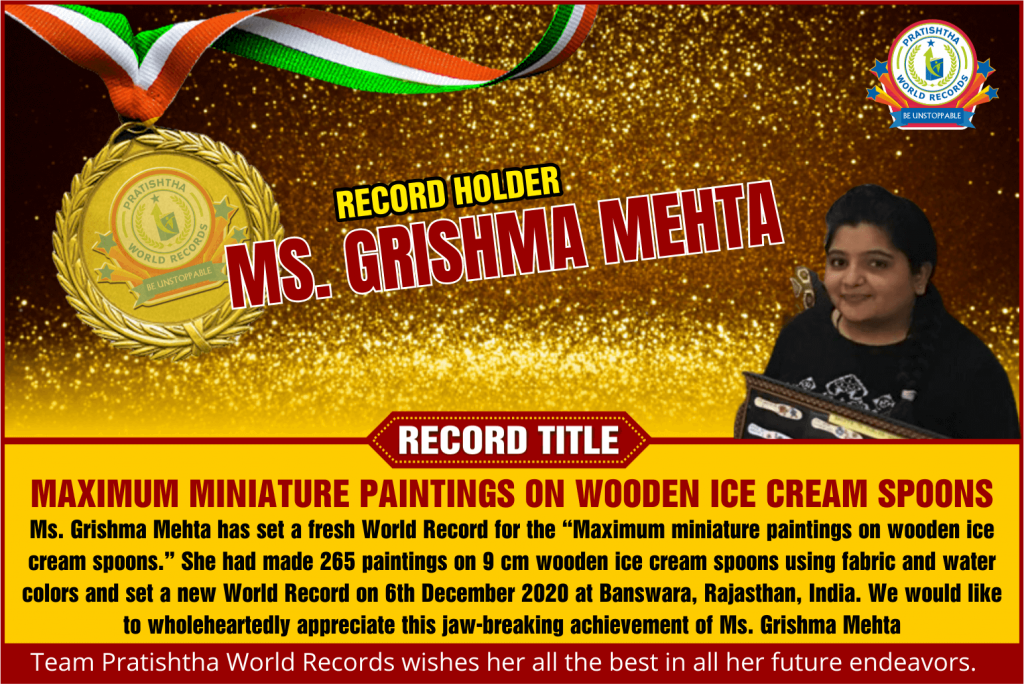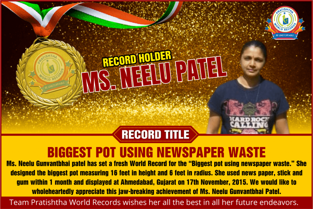 Technology & Innovation Posted by Himmat Bhardwaj January 21, 2022 1 min read World’s Fastest Tree Climbing Scooter Technology & Innovation Posted by Pratishtha World Records December 21, 2021 1 min read WORLD’S FIRST ARTIFICIALLY INTELLIGENT SOCIAL AND EDUCATIONAL HUMANOID ROBOT MADE UP OF WASTE MATERIAL Technology & Innovation Posted by Pratishtha World Records September 22, 2021 1 min read FASTEST DETECTION OF ORAL CANCER Technology & Innovation Posted by Pratishtha World Records September 22, 2021 1 min read THE WORLD’S FIRST GULFSTREAM G700 JET AIRCRAFT Technology & Innovation Posted by Pratishtha World Records August 27, 2021 1 min read BAG FROM NEWSPAPERS THAT CAN HOLD UP TO 10 KILOGRAMS Technology & Innovation Posted by Pratishtha World Records August 21, 2021 1 min read CREATION OF HIGHEST NUMBER OF 3D PAINTINGS Technology & Innovation Posted by Pratishtha World Records August 21, 2021 1 min read INVENTION OF ANIMATED T-SHIRT Technology & Innovation Posted by Pratishtha World Records August 21, 2021 1 min read YOUNGEST WEBSITE DEVELOPER Technology & Innovation Posted by Pratishtha World Records August 18, 2021 1 min read MAXIMUM TECHNICAL INNOVATIONS Technology & Innovation Posted by Pratishtha World Records February 25, 2021 1 min read DEVELOPED A FULLY-FUNCTIONAL VIDEO CONFERENCE APP IN JUST 2 MONTHS Technology & Innovation Posted by Pratishtha World Records September 25, 2020 1 min read INNOVATION OF AIR SHOES SYSTEM Technology & Innovation Media & Entertainment Posted by Pratishtha World Records September 24, 2021 1 min read GREATEST FINALE EVER Media & Entertainment Posted by Pratishtha World Records August 21, 2021 1 min read FIRST & ONLY FEMALE PRESERVING MUSICIAN OF HAVELI SANGEET HERITAGE Media & Entertainment Posted by Pratishtha World Records August 21, 2021 1 min read FASTEST INVERTED PAINTING WHILE SINGING Media & Entertainment Posted by Pratishtha World Records August 21, 2021 1 min read MAXIMUM PARTICIPATION ON BROADCASTING MEDIA DEBATES Media & Entertainment Posted by Pratishtha World Records August 18, 2021 1 min read FIRST INDIAN TO COMPLETE 8TH GRADE IN TWO MUSIC INSTRUMENTS Media & Entertainment Posted by Pratishtha World Records August 18, 2021 1 min read FIRST EVER MAGICIAN OF INDIA TO PARTICIPATE IN MAXIMUM MAGIC CONVENTIONS Media & Entertainment Culture & Creativity Posted by Pratishtha World Records September 5, 2021 1 min read FIRST HANDMADE WOODEN BULLET BIKE Culture & Creativity Posted by Pratishtha World Records August 21, 2021 1 min read PAINTING BY USING MOST PEN DOTS Culture & Creativity Posted by Pratishtha World Records August 21, 2021 1 min read LARGEST DISPLAY OF HANDMADE PAPER QUELLING DOLLS Culture & Creativity Posted by Pratishtha World Records August 21, 2021 1 min read EXPRESSING PATRIOTISM THROUGH INNOVATIVE MAP Culture & Creativity Posted by Pratishtha World Records August 18, 2021 1 min read MAXIMUM MINIATURE PAINTINGS ON WOODEN ICE CREAM SPOONS Culture & Creativity Posted by Pratishtha World Records August 18, 2021 1 min read FIRST-EVER 3D RUBIK’S CUBE MOSAIC PORTRAIT IN THE COUNTRY Culture & Creativity Posted by Pratishtha World Records March 7, 2021 1 min read EXTRAORDINARY CONTRIBUTION IN SOCIETY WITH ART Culture & Creativity Strange But True Posted by Himmat Bhardwaj January 18, 2022 1 min read Most Varieties of Fruits and Vegetables grown on Terrace Garden Strange But True Posted by Himmat Bhardwaj January 17, 2022 1 min read 3D statue of Morari Bapu on Steel Pipes Strange But True Posted by Pratishtha World Records December 21, 2021 1 min read MOST SUCCESSFUL HAIR TRANSPLANTS Strange But True Posted by Pratishtha World Records September 24, 2021 1 min read MONKEY MAN OF INDIA - “KOTHIRAJA” Strange But True Posted by Pratishtha World Records September 3, 2021 1 min read WORLD CLASS BALANCING ACT Strange But True Posted by Pratishtha World Records August 27, 2021 1 min read PLAYING CARROM WITH FEET Strange But True Posted by Pratishtha World Records August 21, 2021 1 min read LONGEST TIME TO PERFORM PASCHIMOTTANASANA BY A SENIOR CITIZEN Strange But True Posted by Pratishtha World Records August 21, 2021 1 min read RIDING A BIKE WHILE STANDING AND FACING BACKWARDS ON LADDER Strange But True Posted by Pratishtha World Records August 21, 2021 1 min read WORLD'S SHORTEST BODY BUILDER AS SPECIALLY ABLED Strange But True Posted by Pratishtha World Records August 18, 2021 1 min read LONGEST RUNNING CARTOON COLUMN Strange But True Posted by Pratishtha World Records August 18, 2021 1 min read DIFFERENT COLOURED EYES Strange But True Posted by Pratishtha World Records March 7, 2021 1 min read MOST PEOPLE WRITING IN ALIKE HANDWRITING Strange But True Posted by Pratishtha World Records February 12, 2021 1 min read SURPASSING 4 MILLION SUBSCRIBERS IN 4 MONTHS Strange But True Industry & Business Posted by Pratishtha World Records September 5, 2021 1 min read INDIA'S BILLIONAIRE BARBER Industry & Business Posted by Pratishtha World Records August 21, 2021 1 min read 10 STORIES BUILDING BUILT IN LEAST TIME (48 HOURS) Industry & Business Posted by Pratishtha World Records August 21, 2021 1 min read LONGEST PENCIL SKETCHING BY A MINOR (FEMALE) Industry & Business Posted by Pratishtha World Records August 21, 2021 1 min read FIRST PERSON TO TRAVEL ALL 195 COUNTRIES Industry & Business Posted by Pratishtha World Records August 18, 2021 1 min read THE YOUNGEST PERSON TO WORK WITH MAXIMUM MULTINATIONAL COMPANIES Industry & Business Posted by Pratishtha World Records August 18, 2021 1 min read INDIA’S LARGEST PRECAST PSC SEGMENTAL TWIN CELL BOX MANUFACTURED AND DEPLOYED. Industry & Business Posted by Pratishtha World Records August 18, 2021 1 min read MOST VARIETY PROGRAMS ANCHORED NON STOP LIVE IN 24 HOURS IN TELEVISION Industry & Business Mass Attempts Posted by Pratishtha World Records September 25, 2021 1 min read LARGEST PHOTO WALK Mass Attempts Posted by Pratishtha World Records September 22, 2021 1 min read LARGEST NGO Mass Attempt